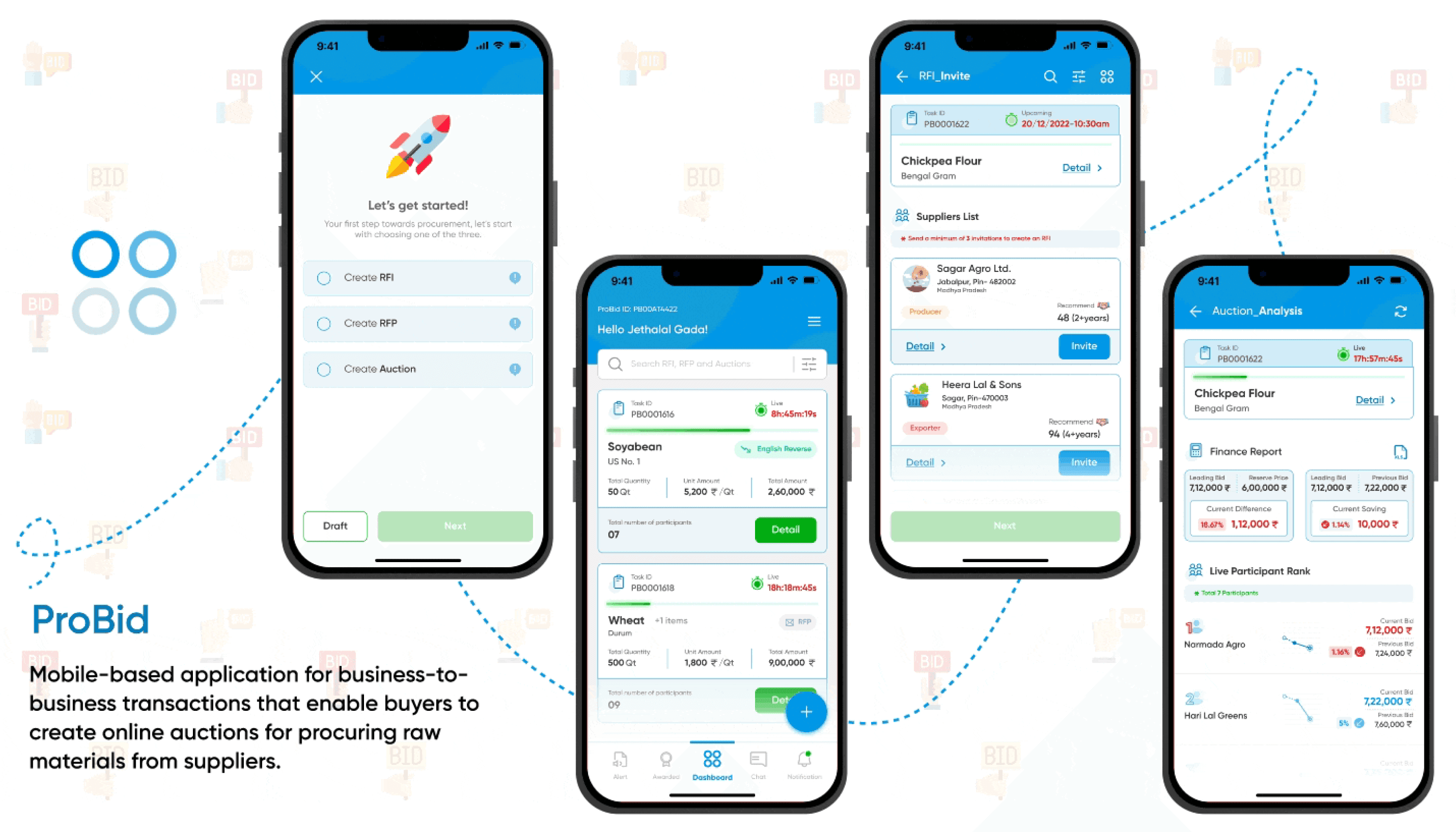Designed an online auction platform on mobile, where the buyer creates and analyses auctions, and suppliers bid competitive prices.
